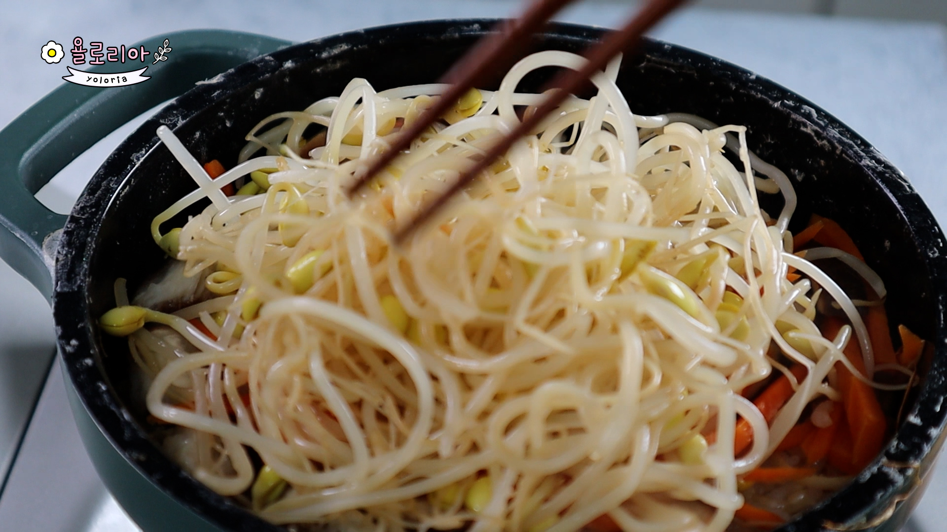 썰어놓은 표고버섯, 당근, 콩나물을 넣고