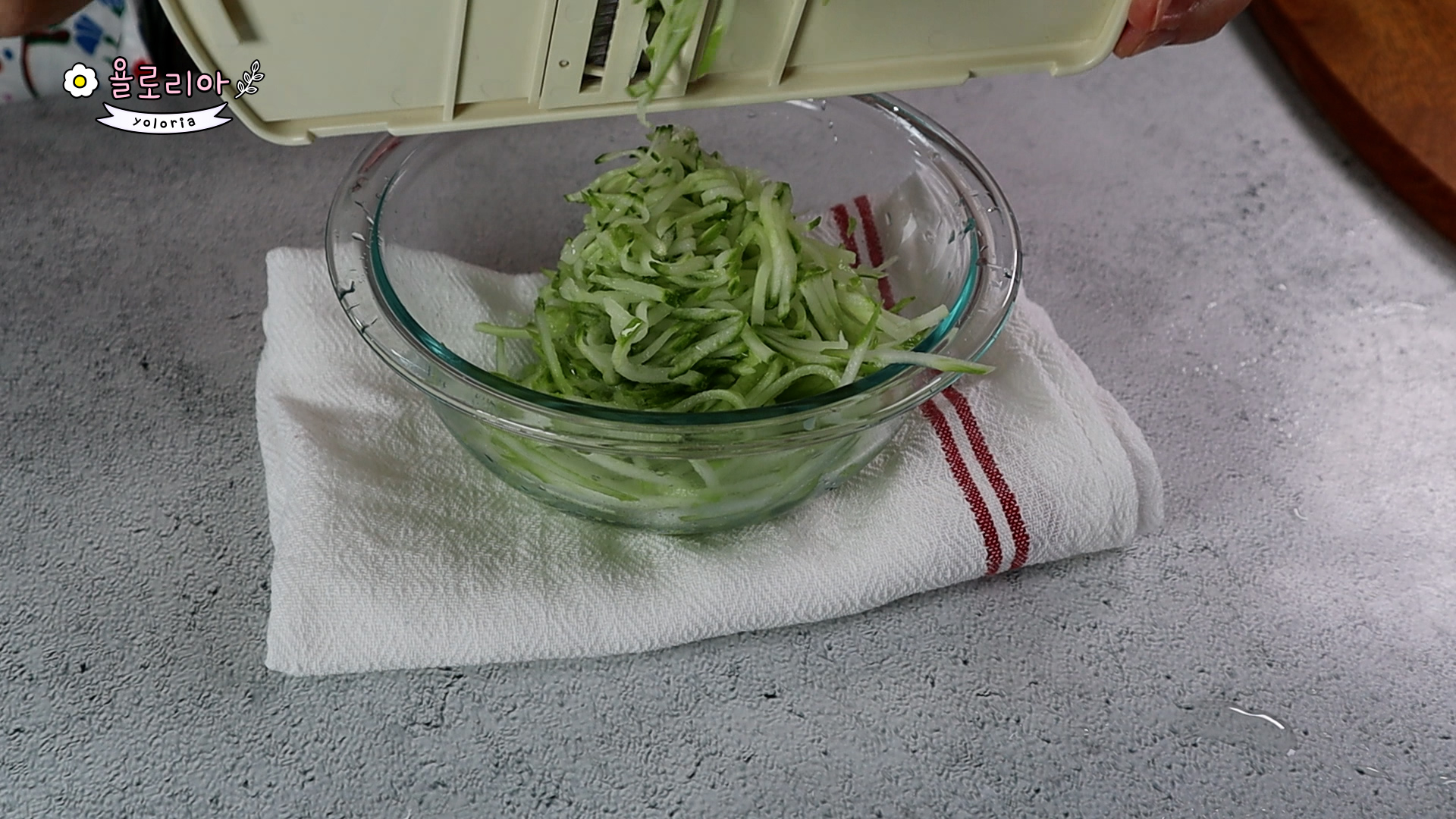 오이 1개 얇게 채썰어주세요