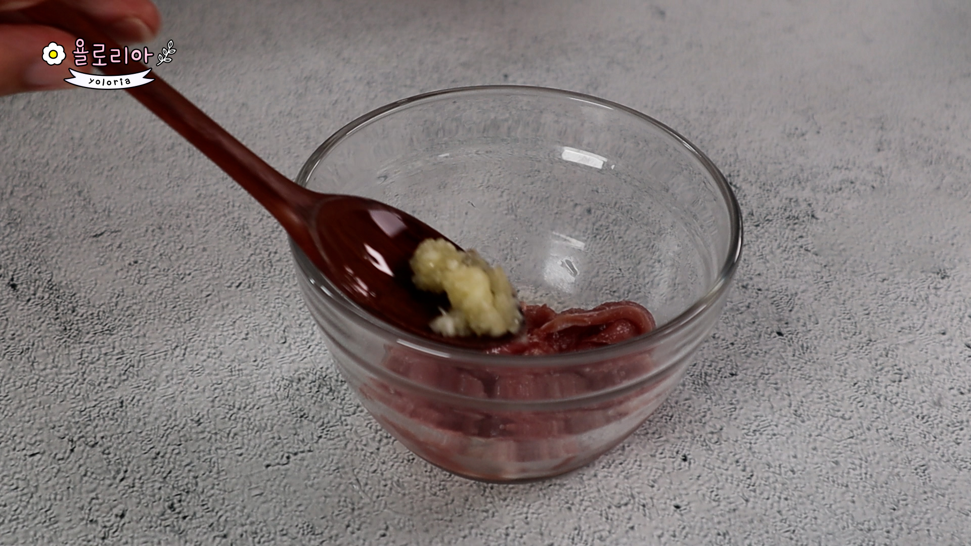 다진마늘 조금, 양조간장 1숟가락 넣고 골고루 섞어줍니다