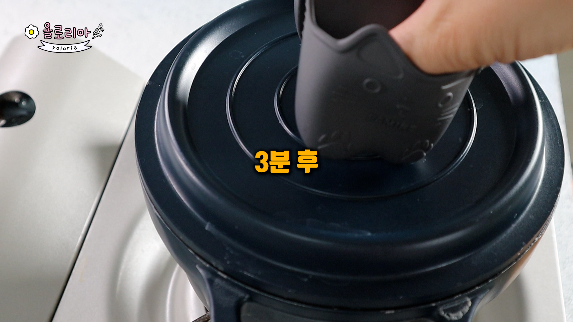 뚜껑 덮고 3분간 아주 약한불에서 익혀주세요