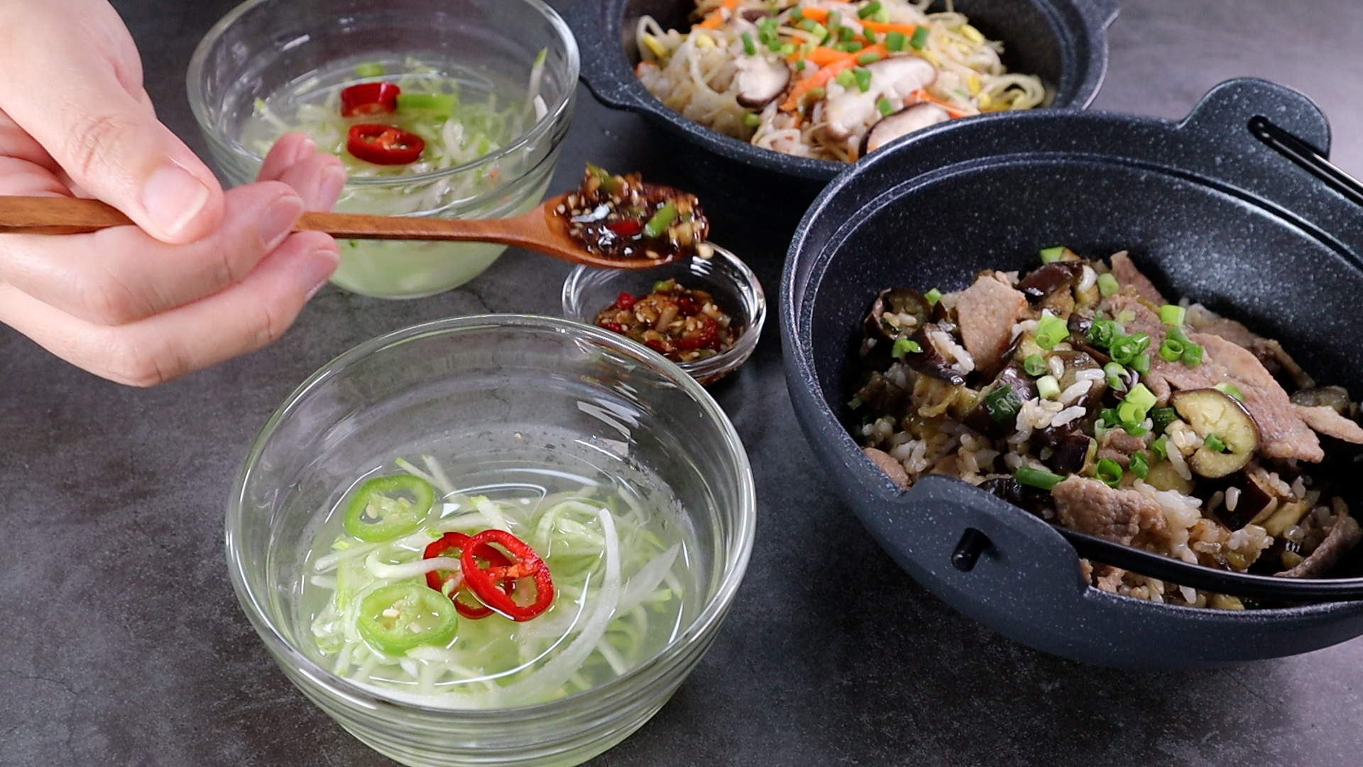표고버섯 콩나물밥과 돼지고기 가지밥