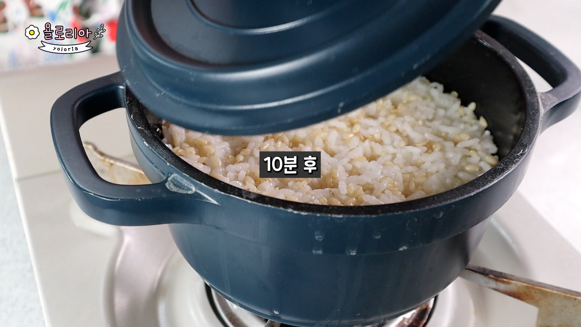 아주 약한불로 줄여 10분간 뜸을 들여주세요