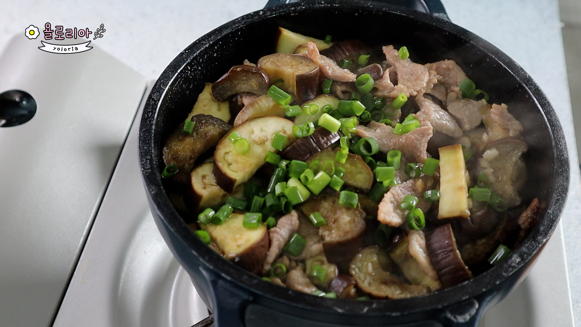 고기가 익으면 썰어놓은 가지와
