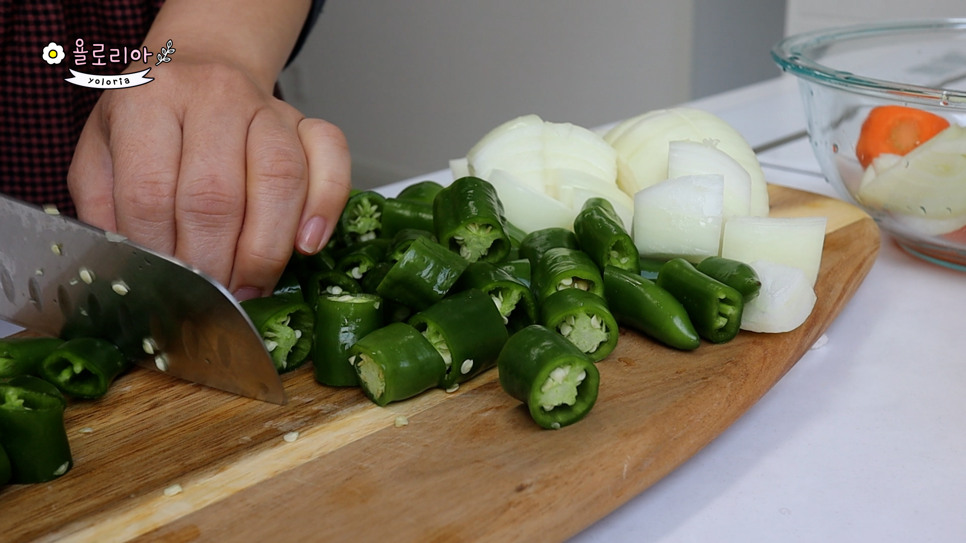 오이고추는 8~10개 1.5cm 정도로 잘라줍니다