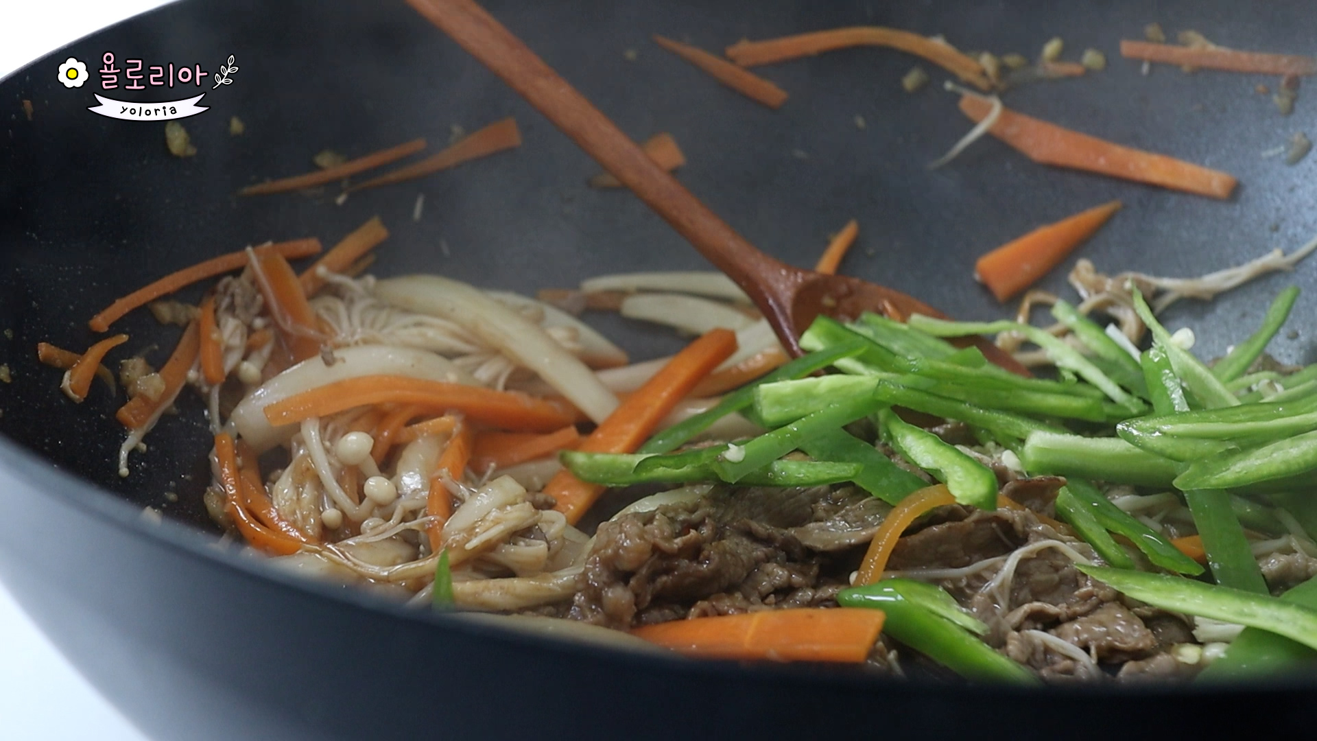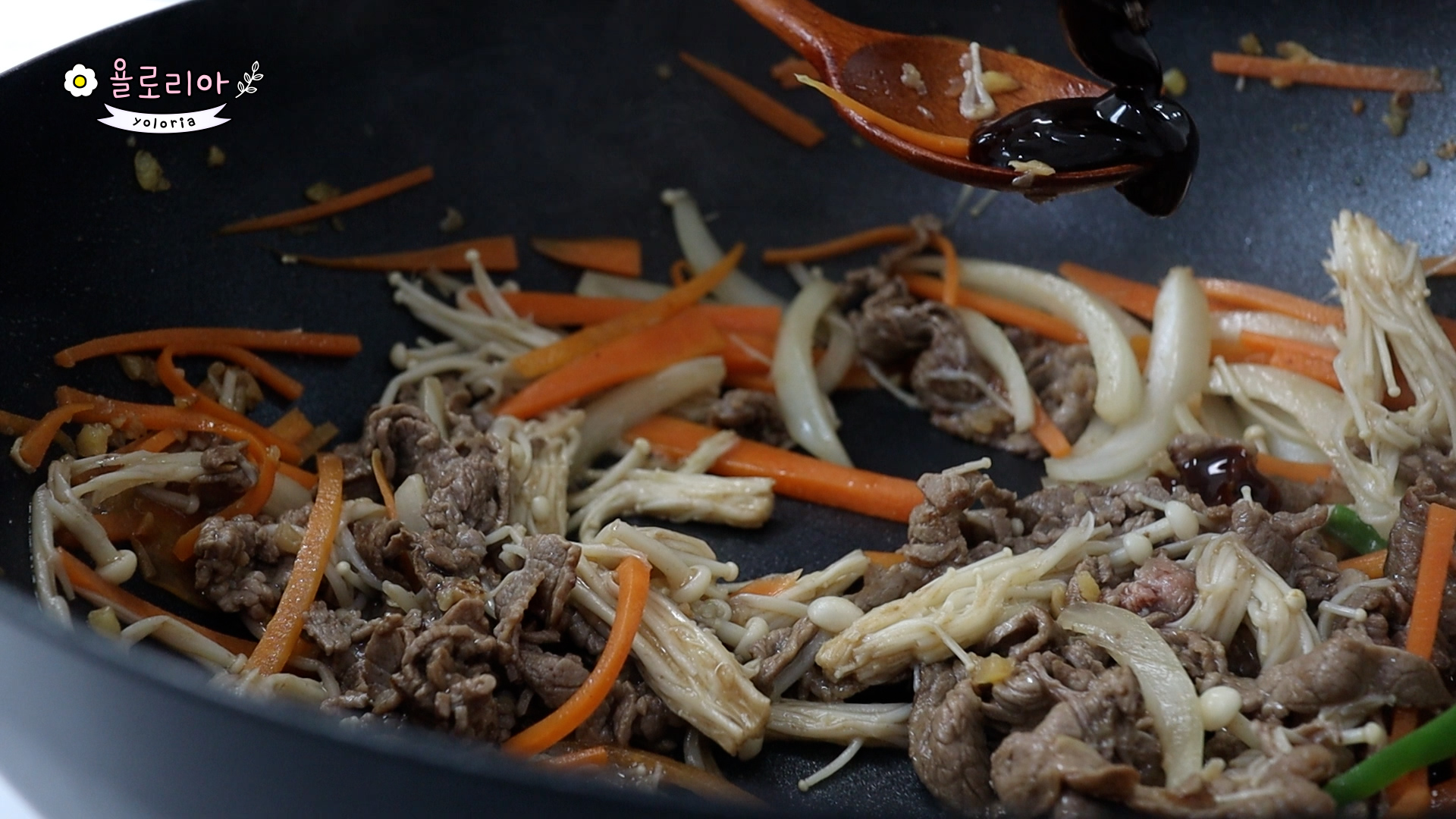 고기가 익을때 팽이버섯 넣고 볶아주세요