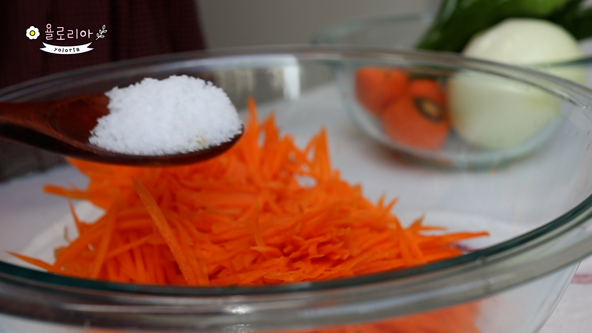 당근 3개는 채썰어 꽃소금 1숟가락 넣어