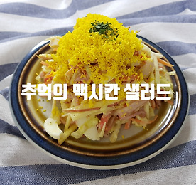 추억의 맥주 안주 맥시칸 샐러드 만들기 안녕하세요! 욜로리아 에요. 추억의 호프집 기억나는 맥주 안주는 쏘야와 맥시칸사라다 에요. 쏘세지 야채볶음과 맥시칸 샐러드 며칠전부터 그렇게 생각나더니 오늘 몸이 이상해요. 감기가 오는지 그럴땐 먹고싶은거 안먹으면 꼭 병이 오더라구요. 양배추 듬뿍 햄, 맛살, 사과 넣어 마요네즈 촥촥 만들어 볼까요? 추억의 맥주 안주 맥시칸 샐러드 만들기 양배추, 햄, 맛살, 당근, 사과, 계란 마요네즈, 허니머스터드, 설탕, 후추 1.양배추 가늘게 채썰기 최대한가늘게 썰어주세요. ' ㅡ '자 채 칼을 이용해도 되요. 2.채썬 양배추 소금에 절이기 소금 1스픈을 골고루 뿌러 절여주여요. 중간중간 손으로 뒤집어 주세요. 3.당근, 사과, 햄 채썰기 맛살 찢어주기 가늘게 ..